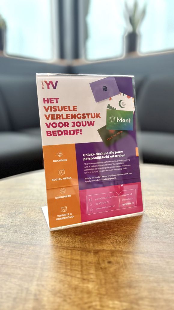 Studio Yv is ontstaan uit die ervaring. Inmiddels werk ik dagelijks met ondernemers die net als ik geloven dat goed design verder gaat dan ‘mooi’. Het moet werken, raken en spreken.